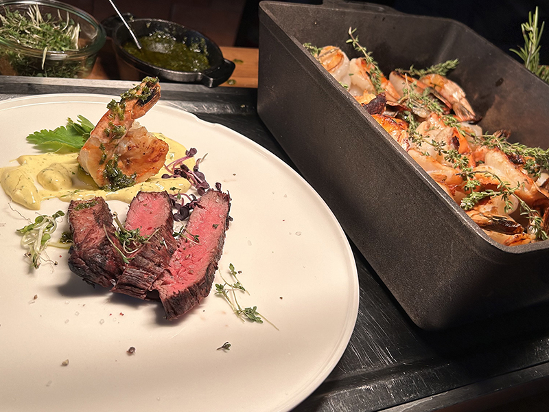 • Live-Cooking-Bereiche mit wechselnden Hauptgängen (Fisch, Fleisch, Vegan)