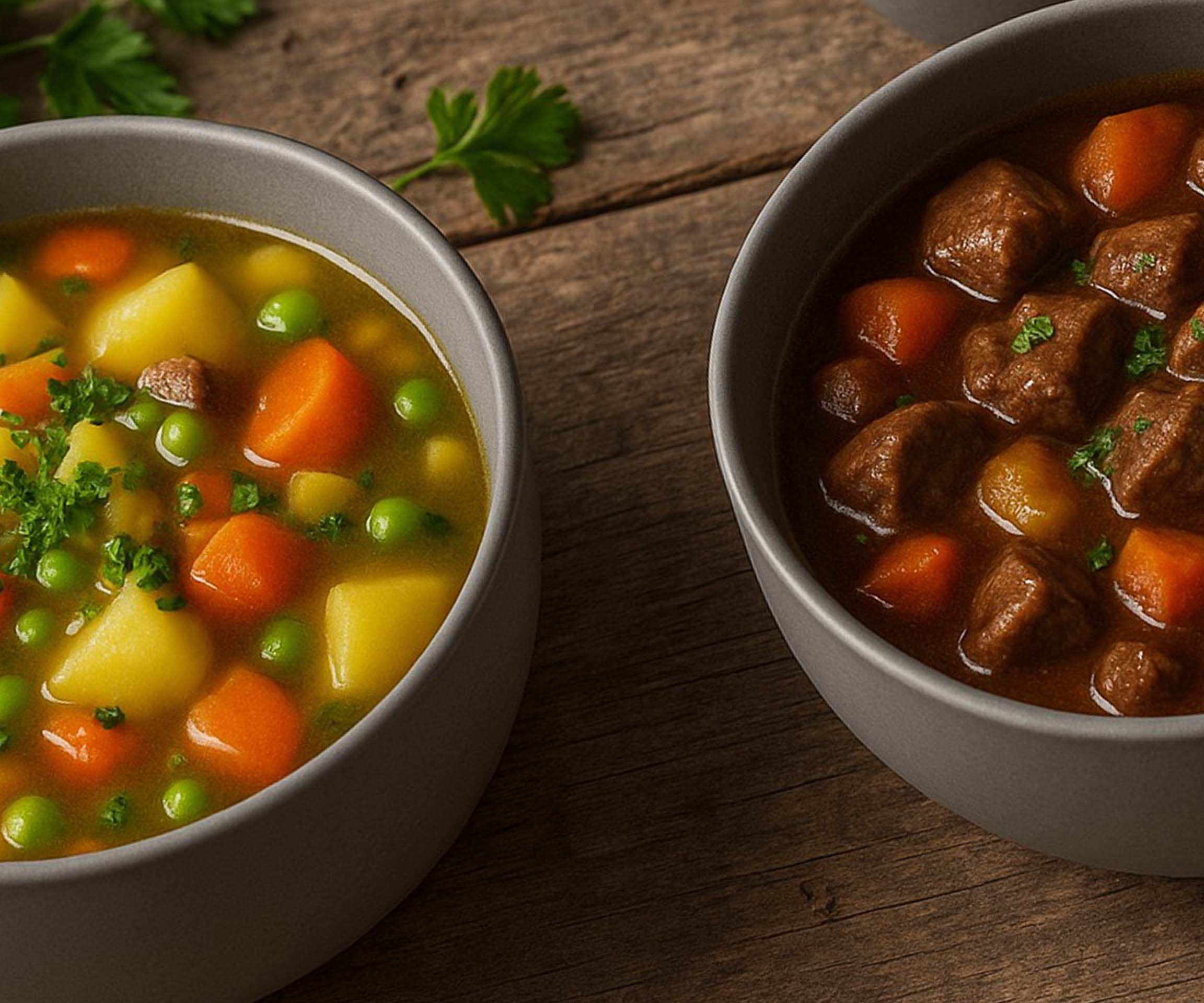 Zur Abrundung des kulinarischen Angebots bieten wir zwei herzhafte Eintöpfe – einer vegan, einer mit Fleisch.