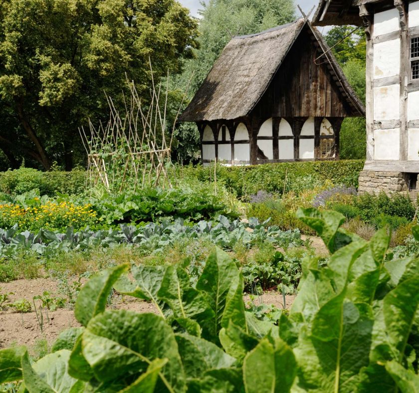 1) Unser Gemüse stammt direkt aus den Gärten des LWL-Museum Hellerlecht | Detmold. Frisch geerntet, zur Museumsgastronomie gebracht und sofort verarbeitet. Alles, was dabei an Abfällen entsteht, landet auf unserem Komposthaufen. Der daraus entstehende Humus kehrt zurück in die Beete – und sorgt genau dort für neues Wachstum.